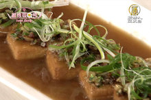 蛋豆腐也叫玉子豆腐,也就是放入雞蛋加工而成的豆腐,味道上多了蛋香,口感也十分細緻滑嫩。羅麒祥大廚又加上很多人都愛的鹹豬肉,酥酥香香的口感真的好吃!