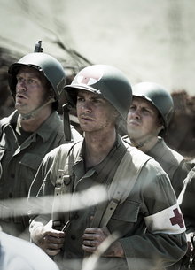 【新唐人亞太台 2016 年 10 月 12 日訊】1945年春天,二戰在沖繩島的美軍遭遇前所未見的慘烈苦戰,日軍和美軍雙方死傷人數不計其數,在千瘡百孔的戰場上,一名隸屬的美軍第77步兵師的美國軍醫戴斯蒙杜斯(安德魯加菲爾德飾)因信仰拒絕拿任何武器上戰場,面對日軍敢死隊的猛烈攻擊,以及遍佈各處的機關槍掩體和詭雷,在上級下達撤退命令部隊所有人都離開時,只有他獨自留下來,憑藉一己之力來回穿梭槍林彈雨中拯救了75名重傷同袍的生命,10月杜魯門總統頒發榮譽勳章給戴斯蒙杜斯,成為美國史上最偉大的二戰英雄,《鋼鐵英雄》真實英雄搬上大螢幕。