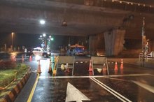 199線31K處 (車城鄉溫泉村)道路積水,擺設交通錐實施單向交通管制。