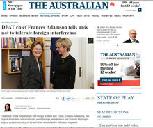 該頭版其中一篇報導「華裔澳洲人鞭笞中共插手澳洲」(Chinese Australians lash party meddling),及頭版另一篇報導「外交部首腦告訴中國學生:說出來」(DFAT chief tells China students: speak up),及還有第六版上的「北京對澳洲國防合同商的網絡攻擊」(Beijing launched cyber attack on Aussie defence contractor)等文。
