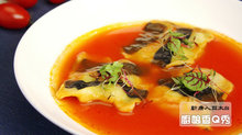 5.     下鍋將餃子煮五至六分鐘。熟後放入番茄湯內。再裝飾生菜苗、百里香。