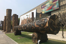 高聳巨大的圖騰圓柱及盤古結構(國美館提供)