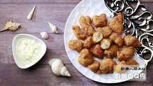 3.北極螺沾裹麵粉、蛋液、麵包粉後入180度C油鍋內炸熟,附上塔塔醬即完成。