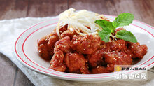 3.雞肉沾裹麵粉後入180度C油鍋內炸至金黃色,入鍋內拌入韓式炸雞醬與白芝麻即完成。