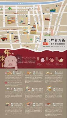 【新唐人亞太台 2019 年 01 月 11 日訊】農曆過年即將到來,台北年貨大街迪化街將在1月19日至2月3日舉行。今年以「年來了」為主題,將2019生肖豬化身為「吃吃獸」、「懶懶獸」、「嘴嘴獸」規劃系列行銷活動,傳授大家擊退年獸的妙方。除了迪化街,包含台北地下街、後站、華陰街、艋舺夜市、寧夏夜市、榮濱商店街、沅陵街、四平陽光等9大商圈及夜市也推出年節活動,並推出AR互動體驗,邀大家一起來台北走春過年打敗年獸!