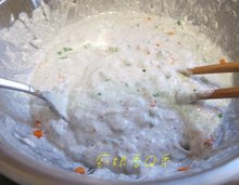 1. 將所有材料放鋼盆內攪拌均勻,靜置20分鐘