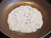 2. 鍋中放油,放1/3麵糊,用湯匙攤平,厚度約0.7(喜歡口感酥脆的人,也可以將麵糊攤薄一點)