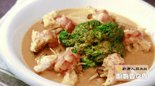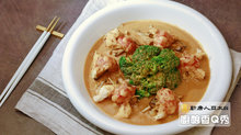 6.蝦子取出淋上高湯加入炒熟青花菜即可。