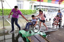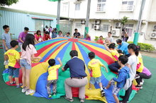 Asep補教聯盟生命教育體驗闖關活動分成4組進行,讓學生透過融合互動、輔具體驗、氣球傘、導覽、水餃美食等活動來認識喜樂的服務內容與精神。大、小朋友與喜樂憨兒在老師的引導下很快融合在一起,在氣球傘高低起伏中,同心協力的不讓球滾出,尖叫聲此起彼落;而在輪椅體驗活動,小朋友們更體會到身障者的辛苦;以及參觀瑪喜樂生命教育園區,看到喜樂阿嬤不僅幫助孩子身體上的治療和復建,更是鼓勵孩子們跌倒了自己站起來,用生命的鬥志、勇氣、毅力,走出自己的一片天。