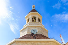 星巴克麗寶鐘樓門市為全台首座以歐式鐘樓教堂式外型的門市。(星巴克提供)