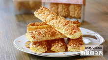 5.用切麵刀切開起酥皮,排放在烤盤上。