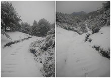 排雲山莊 從昨天晚上10點多開始降雪,到今(28)日 8時25分持續降雪,昨天進住排雲山莊山友70位經山莊管理員勸導,都停留在山莊,今天早上已回程登山口。