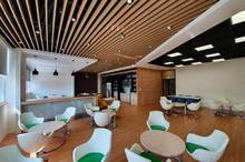 北醫的幸福空間面積約46坪,視野開闊,設計輕鬆活潑、舒適環境,容納約52個席位,可多人、雙人,也可個人使用,搭配書本閱讀區、健康小點區、咖啡熱飲、飲品冷藏櫃、輕食點心櫃等,在上班時間,全部免費提供給全體員工,只要拿出教職員卡一逼,想吃想喝什麼任你選。