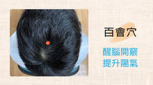 ●百會穴:百會穴位於兩耳尖連線直上,位於頭頂正中處,有助醒腦開竅,升提陽氣。