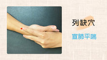 ●列缺穴:列缺穴位於橈骨莖突上方,腕橫紋上1.5寸,兩手虎口自然平直交叉,一手食指按在另一手橈骨莖突上,指尖下凹陷處,可宣肺平喘。
