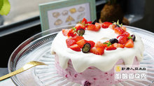 13. 在切好的戚風蛋糕面上抺上果醬鮮奶油,放上草莓、藍莓,再抺上一層果醬鮮奶油,再放上另一切好的戚風蛋糕面,讓它能黏住不會脫離。