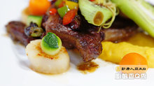 2020全國優秀青年林忠毅,要分享很特別的食物禮物,鮭魚玫瑰花佐蛤蜊鮮奶泡泡/照燒松阪肉米糕/牛小排襯時蔬佐葡萄醬汁/日式烤魚附九層塔餅,把它們當禮物,一定能真正送到收禮者心坎裡!尤其牛小排及干貝的海陸雙併,超豐富的!林忠毅主廚謱提醒蛤蜊加入白酒,殼開後,再把肉與殼分開,過濾出汁。加入牛奶,用小火打成奶泡備用。