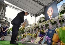 あなたの98年の生涯を思う時、私は人間と人間の絆の強さと素晴らしさを思います。私たちは何度も、肩を抱き、笑い合って、楽しい時間を過ごしました。あなたは台湾総統として、私は日本国総理として、それぞれの立場はありましたが、お互いの人間としての友情や尊敬は一度も揺らぐことはありませんでした。今日、私がここに立っているのもその証です。ただ、私の心が深く痛むのは、これが私たちの友情を確かめる最後の機会となってしまったことです。
