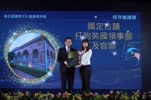 【新唐人亞太台 2020 年 11 月 02 日訊】「第五屆國家文化資產保存獎」頒獎典禮於在文化部文化資產園區表演藝術館舉行,獲獎者包括保存維護類:國定古蹟「臺灣總督府交通局鐵道部」、國定古蹟「原臺南水道」(水源地區)、國定古蹟「打狗英國領事館及官邸」,以及重要古物「臺鐵公文檔案(工務處石牌倉庫)及臺鐵技術檔案(工務處石牌倉庫)」;保存貢獻類:立偕生活文化有限公司;保存傳承類:許漢珍司,得獎者涵蓋有形、無形文化資產,為保護文化資產傑出貢獻。