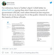 此事在週六持續發酵,推特審查言論行為受到多方指責,前美駐聯合國大使表示,封川普推號是共產中國行為。週六(1月9日),美國國務卿蓬佩奧發推說,禁言是危險的,不能壓制7500萬美國人的聲音。