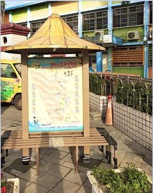 多種語言的導覽內容再加上令人吸睛的斗笠造型的裝置藝術,除了讓小朋友學習家鄉更多事物,常吸引遊客駐足觀看,也讓地圖的導覽功用充分發揮。