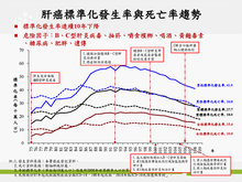 長久以來,肝癌位居國人10大癌症之首,近年來,排序後退,108年位居第4名,高雄長庚副院長盧勝男表示,這1、20年來,台灣持續推動B肝疫苗接種、B、C型肝炎篩檢及健保給付治療等,肝癌年齡標準化發生率連續10年下降。