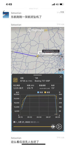另據新浪微博消息,據白雲機場小程式顯示,中國東方航空MU5735由昆明長水飛往廣州白雲,執行航班為波音737-800(NG),2015年6月22日交付東航雲南,機齡6.8年。