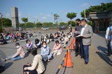 新竹縣竹北市十興國小昨天(5日)有兩名學生,因接觸到外縣市的確診者而隔離,並在隔離期間採檢確診,該校全校停課至4月11日,全校1897名學生、165名教職員今天(6日)上午均返校採檢,新竹縣長楊文科一早也前往關心學生,鼓勵初次接受PCR採檢的學生「不要驚慌」,同時呼籲縣民提高防疫意識,共同抗疫。