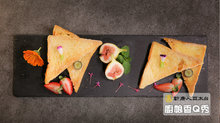 托斯卡尼:吐司片塗抹香濃乳酪醬,烤至金黃色。
