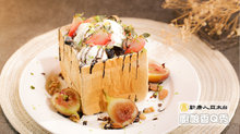 繽紛吐司盒:吐司厚片挖空,抹奶油沾香草糖,搭配新鮮水果與自製醬汁。