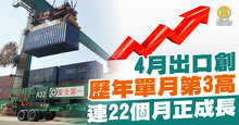 4月出口創歷年單月第3高 連22個月正成長