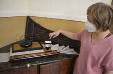 王常憶說,嘉義縣鹿滿國民小學校長翁俊忠與太太吳春慧(內埔國小校長)長年跟著陳聖輝學習漆藝,也成了手藝成熟的漆器藝師,2人以學校疏伐的樟樹、櫸木製作漆器,並在學校推廣廢物再利用,這次他們也展出數十件作品。