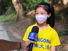 煉功隊伍中,年齡最小的林小妹妹今年才九歲,她說,修煉後知道要用真、善、忍要求自己,「有一次,同學看我頭上戴了漂亮的髮飾,就從我頭上拿下來,丟到遠遠的地方,叫我自己去撿回來,我沒有和她起爭執,只有默默的把東西撿回來。」林小妹妹的爸爸補充,修煉法輪功除了心性的提升,對身體的健康也起到了很大的作用,「女兒這九年來不曾因為不舒服而吃過一片藥,即便發燒也是十二小時內自動退燒」。