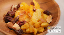 4. 盛盤,盤飾焦糖蘋果、南非柑橘瓣、橙皮、堅果碎。