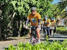 大鵬灣單車站負責人羅博原表示,大鵬灣共有16種以上的自行車遊程建議,濕地生態、美食小吃、與神同行、在地職人、水域體驗元素之外,更有清新晨曦、暖冬午后、壯麗夕陽等時段選擇,搭配騎乘距離遠近等排列組合。