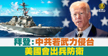 拜登:中共若武力侵台 美國會出兵防衛