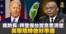 【新唐人亞太台 2022 年 10 月 03 日訊】美國總統拜登上任以來4度表態若中國犯台,將出兵協防台灣。美國國防部長奧斯汀受訪表示,美軍隨時做好捍衛自身利益、履行承諾的準備,而拜登回覆的意思很清楚。