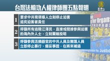 台灣法輪功人權律師團30日發表五點正式聲明:(1)要求中共現領導人立刻停止迫害法輪功、追究迫害者責任;(2)呼籲所有追隨江澤民,直接或間接參與迫害法輪功的海內外人士立刻棄暗投明;(3)呼籲參與活摘器官的中共人員及醫護人員立即停止暴行、備妥事證,在將來補過;(4)對於不放棄迫害法輪功及活摘器官的領導層及個人,將繼續追究其法律責任;(5)江澤民未能活著接受歷史性大審判,對受迫害者及家屬、對全中國都是遺憾。江澤民迫害上億法輪功學員,罄竹難書的所有罪行將被歷史所銘記,警惕著全人類不再重蹈覆轍。