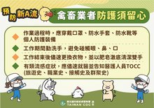 最後,疾管署請民眾遵守「5要6不」原則。「5要」是:肉類及蛋要熟食、要以肥皂澈底洗手、出現症狀,要戴口罩速就醫並告知職業及接觸史、與禽畜長期接觸者要接種流感疫苗、要均衡飲食及適當運動;「6不」:不生食禽鳥蛋類或製品、不走私及購買來路不明肉品、不接觸或餵食禽畜、不野放及隨意丟棄禽畜、不將飼養禽畜與其他禽畜混居、不去空氣不流通或人潮擁擠的場所。
