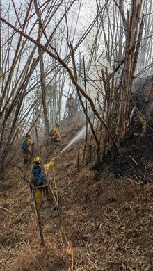 林務局救災人員現場處理殘火。(屏東林管處提供)