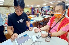 童心創意協會呂宮儀老師,也帶領大家進行可以鍛鍊自律神經的音樂律動及增進表達溝通和記憶力的桌遊,長輩與善士、義工們互動熱烈、玩得不亦樂乎。