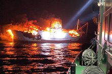 暗夜火燒船5人跳海逃生 澎湖海巡即時救援
