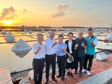 另外,也參訪日治時期台灣總督府專賣局所建造的洗滌鹽工場,了解當時洗滌鹽工場之文化歷史,並參訪井仔腳瓦盤鹽田,在鹽田現場觀賞到獨一無二的夕陽美景,椎木市長直呼太美了!開心地與夕陽拍下各樣美景照片。