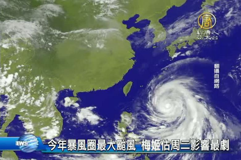 新聞頭條先帶您關心,中度颱風梅姬威力不斷增強,暴風半徑也有擴大跡象,氣象局表示,不排除今天晚上8點半就會發布海上警報,陸上警報也可能提前到明天清晨或上午發出。氣象局說,梅姬將是今年侵台的颱風中,暴風圈最大的颱風,全台灣都會籠罩在暴風圈中。估計,星期二將是影響台灣最明顯、風雨最大的時候,星期三颱風會逐漸遠離。 //asset2.ntdtv.com.tw/public/uploads/assets/2016/09/25/2016-09-25-57e7bd867546f.mp4 梅姬|梅姬颱風|大雨|海上警報2016-09-26 17:01:41