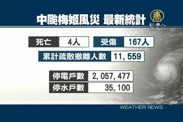 梅姬颱風4死逾百傷 兩百萬戶停電