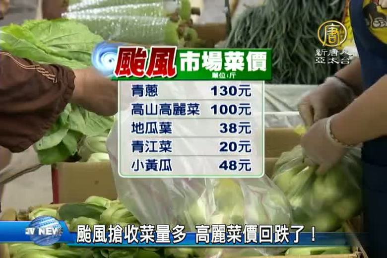 「梅姬」颱風持續發威,觀眾朋友今天如果還有上傳統市場的話會發現,菜價有稍微回跌了,因為各產地搶收,今天(27日)傳統市場備貨量比平常多三成,包括高麗菜、青江菜,價格都回跌。 //asset1.ntdtv.com.tw/public/uploads/assets/2016/09/27/2016-09-27-57ea75d1b6fae.mp4 高麗菜|菜價|梅姬颱風|颱風|災情2016-09-27 21:32:45
