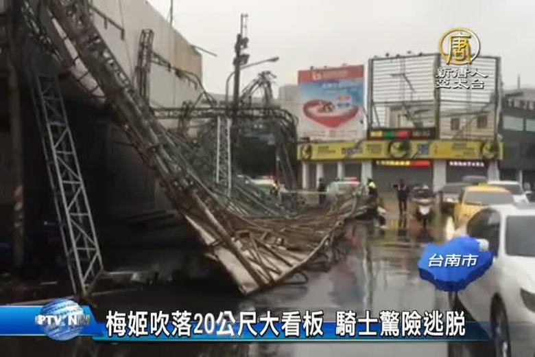 梅姬吹落20公尺大看板 騎士驚險逃脫