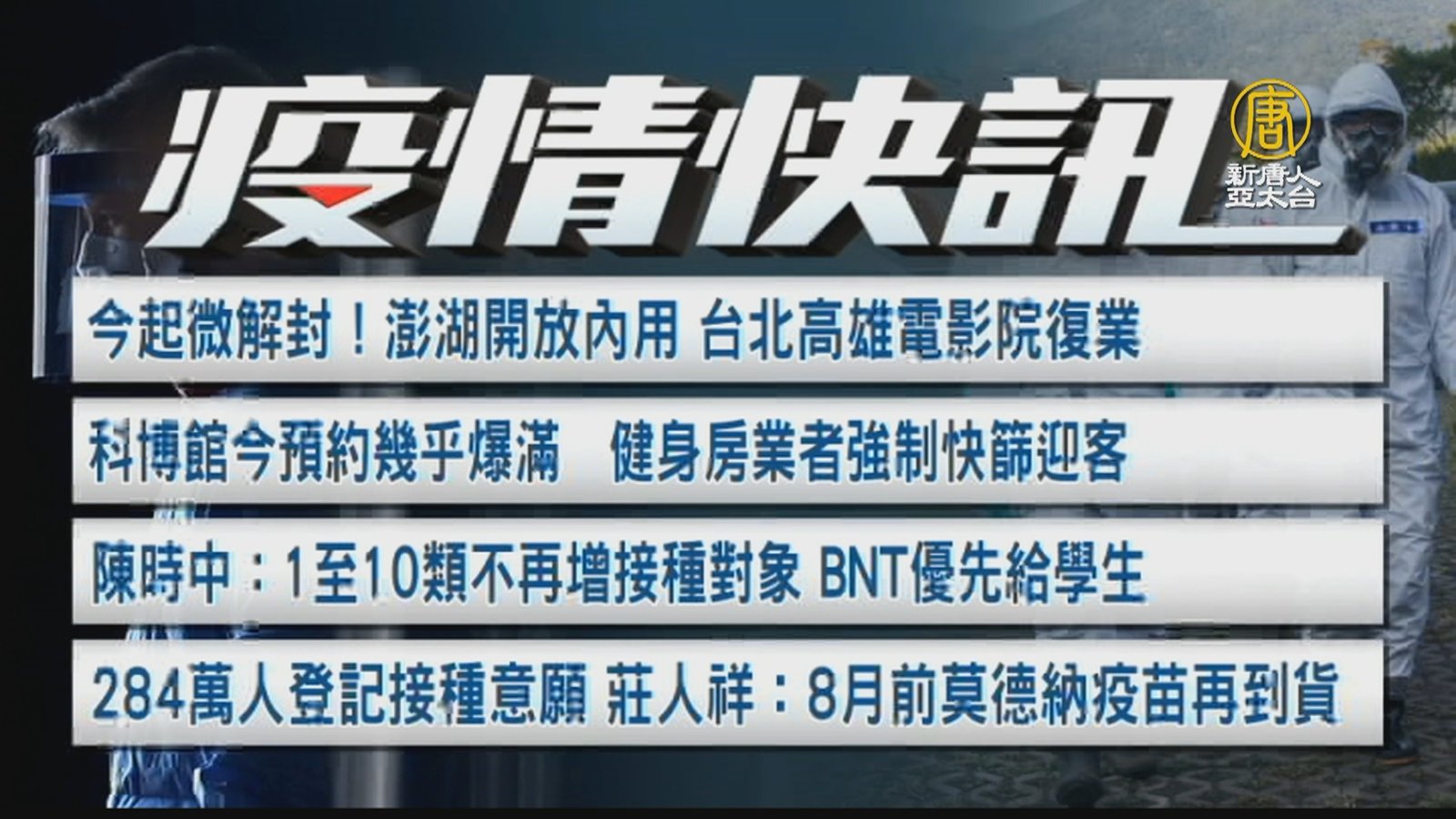 來看到今天的疫情快訊。蔡總統感謝日本提供第三批疫苗,呼籲台灣民眾踴躍登記接種意願。單日接種超過22萬3千人次,創下新高,指揮中心指揮官陳時中說:不用到8月中旬就可以達到25%的接種率。「微解封」第一天,台中逢甲等6家夜市恢復營業。文化部長李永得今天說:將提出表演場館解封計畫,爭取7月26日重新開放。 //asset1.ntdtv.com.tw/public/uploads/assets/2021/07/13/2021-07-13-60ed84a3ddc8a.mp4 疫苗|微解封|李永得|中共肺炎|武漢肺炎|疫情|防疫|中共病毒|新型冠狀病毒2021-07-13 20:17:47