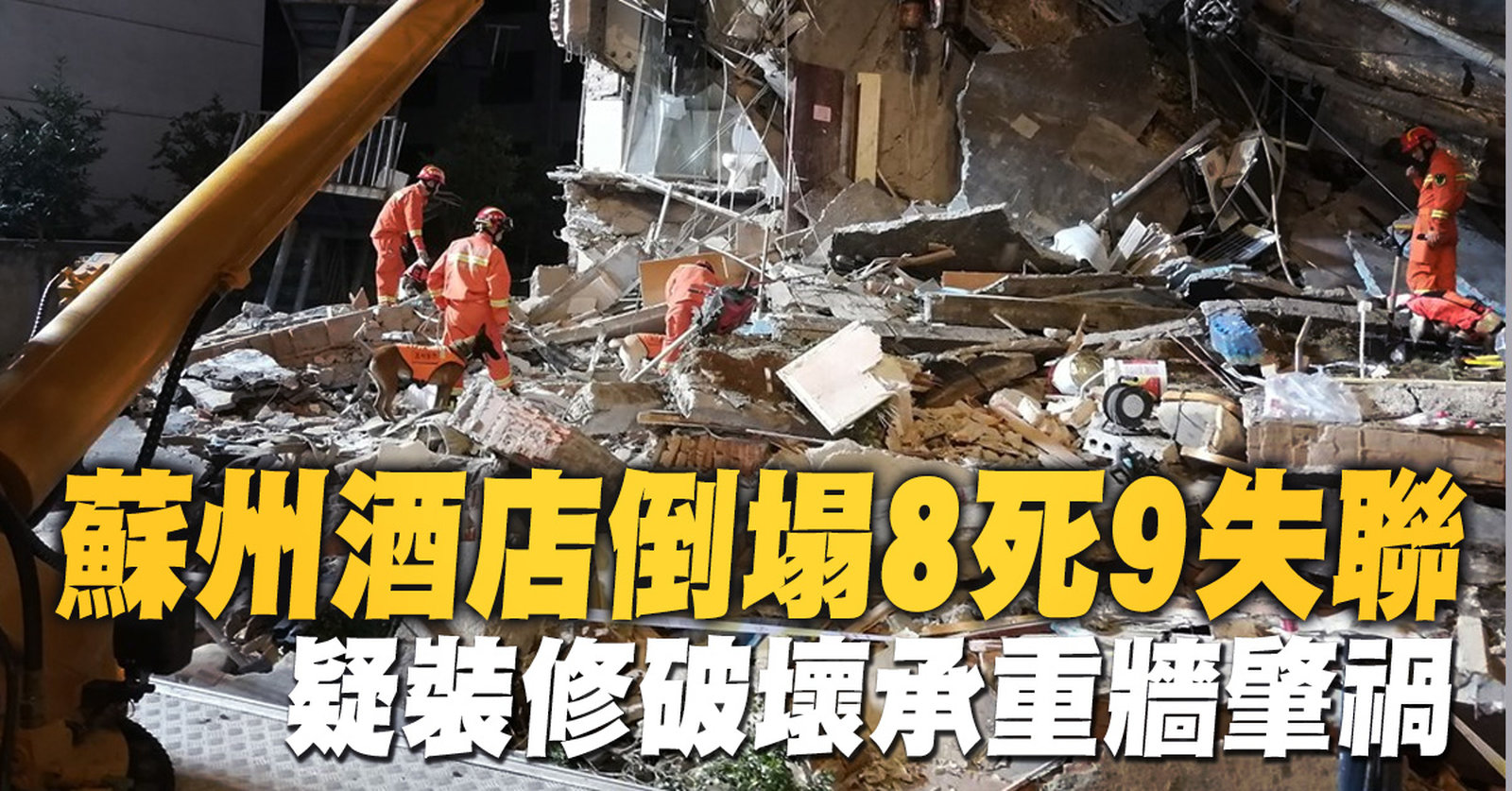 蘇州酒店倒塌8死9失聯 疑裝修破壞承重牆肇禍|中國一分鐘