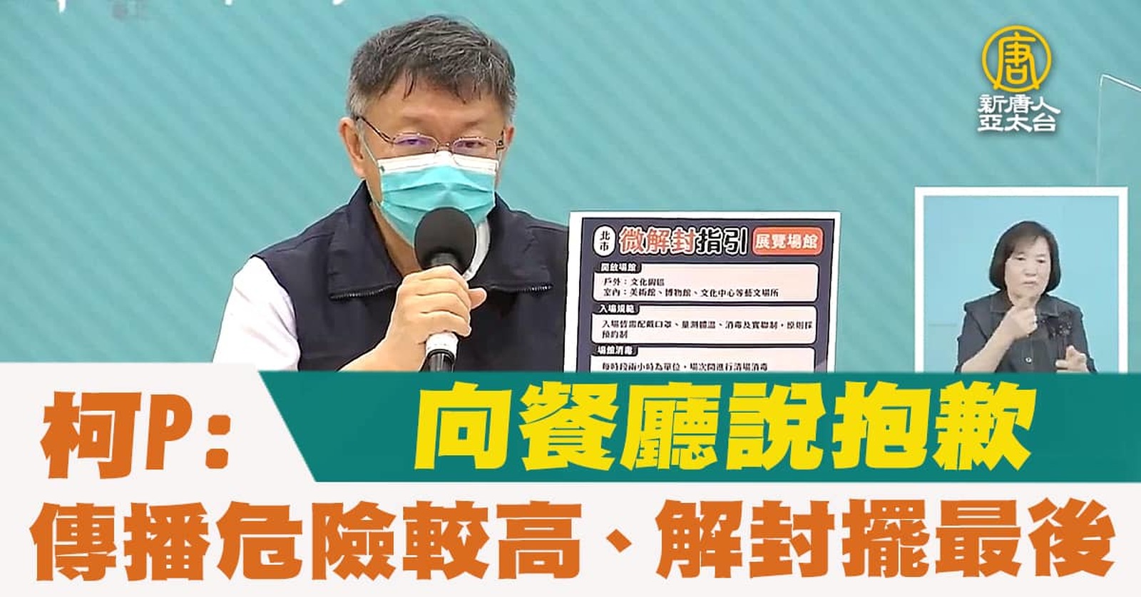 向餐廳說抱歉 柯P:傳播危險較高、解封擺最後